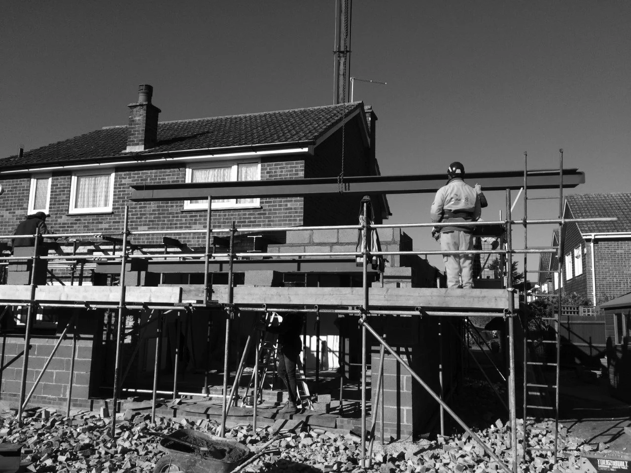 An exciting and interesting project. The shell was a solid 1970’s built detached property functioning as a 1970s home with an existing extension to the side and a protruding steel externally restricting headroom internally.