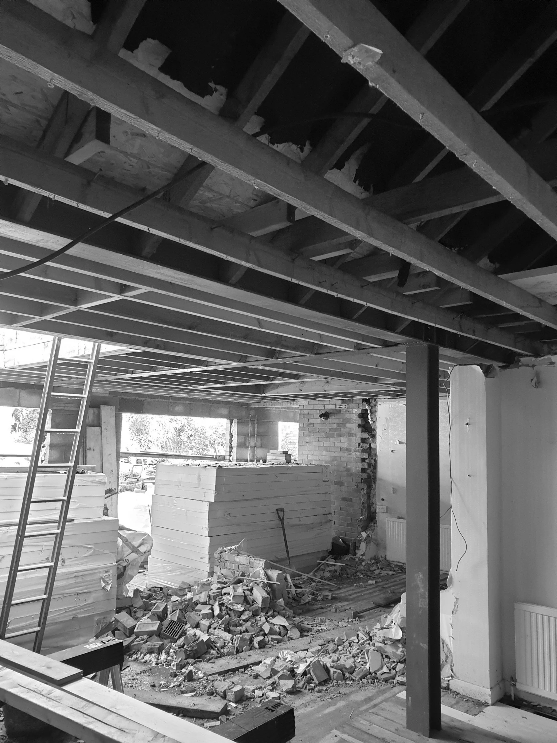 The initial brief was to try and create a new first floor incorporating three large bedrooms, a bathroom and en-suite bedroom. By relocating the bedrooms upstairs allowed the ground floor to open up and make the space work better. The initial design achieved the brief by creating a large three bedroom home. The restricted headroom along with the cost of raising the roof and potential planning constraints made this option unviable for the client.